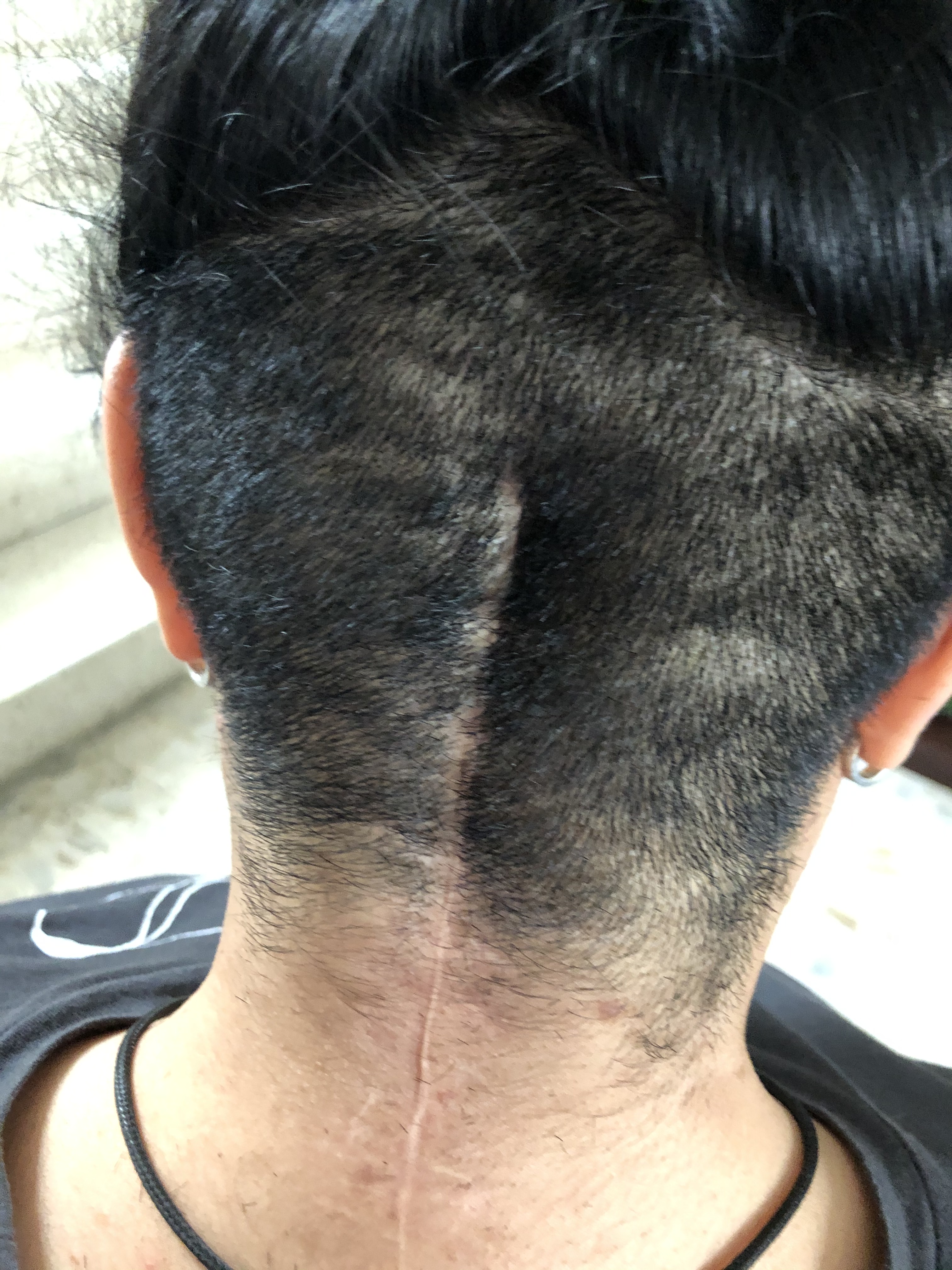 El hoyo de la nuca incrementó su profundidad, según el doctor era bueno porque significaba que el quiste seguía reduciendo su tamaño. En las mañanas, al levantarme, lo sumido en la nuca casi no se percibía, pero al pasar las horas se sumía cada vez más y alcanzaba su punto máximo en la noche. Supongo que por el efecto de la gravedad. Y la cicatriz había sanado por completo.